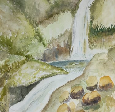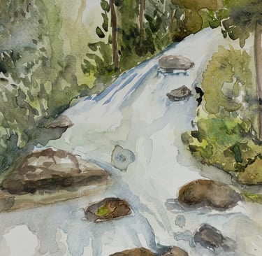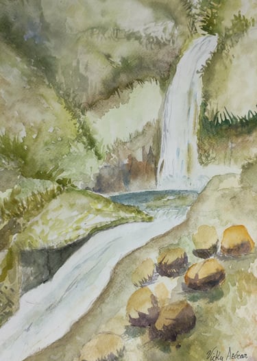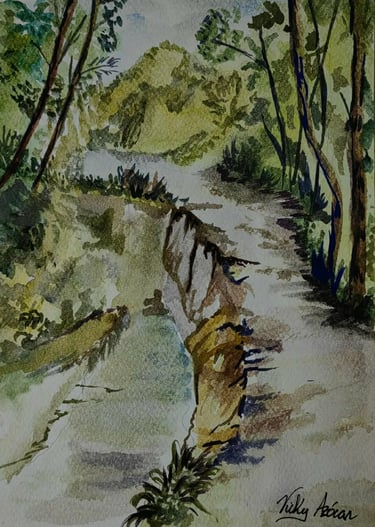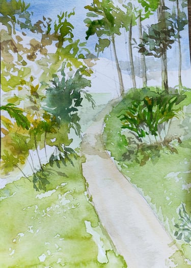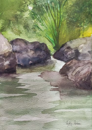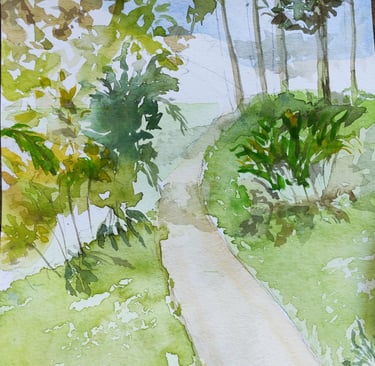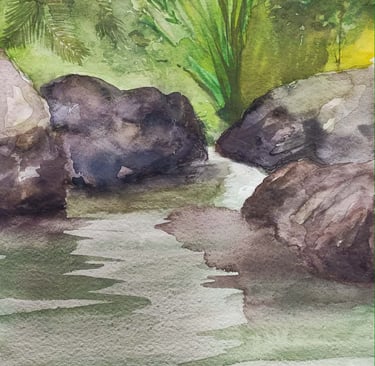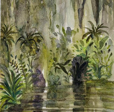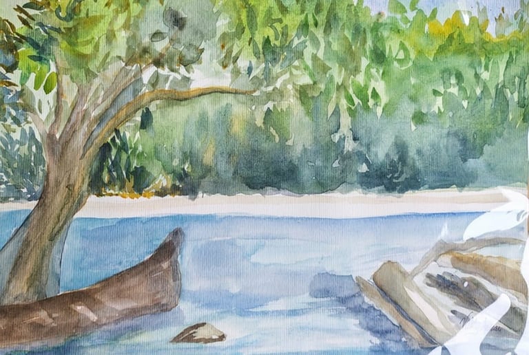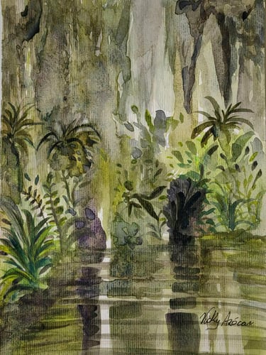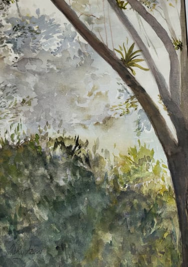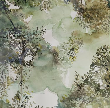 Her compositions reveal a profound connection with the natural environment, where subtle colors, ethereal atmospheres, and fluid brushstrokes converse to convey calm, contemplation, and emotion. In each work, watercolor becomes a poetic language that highlights the visual richness of nature and the artist's intimate perspective.